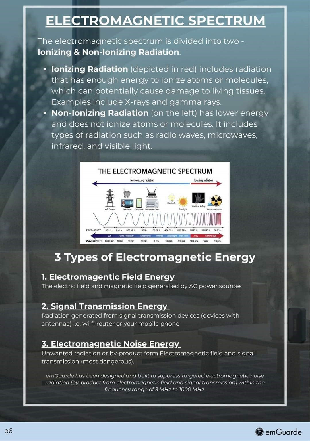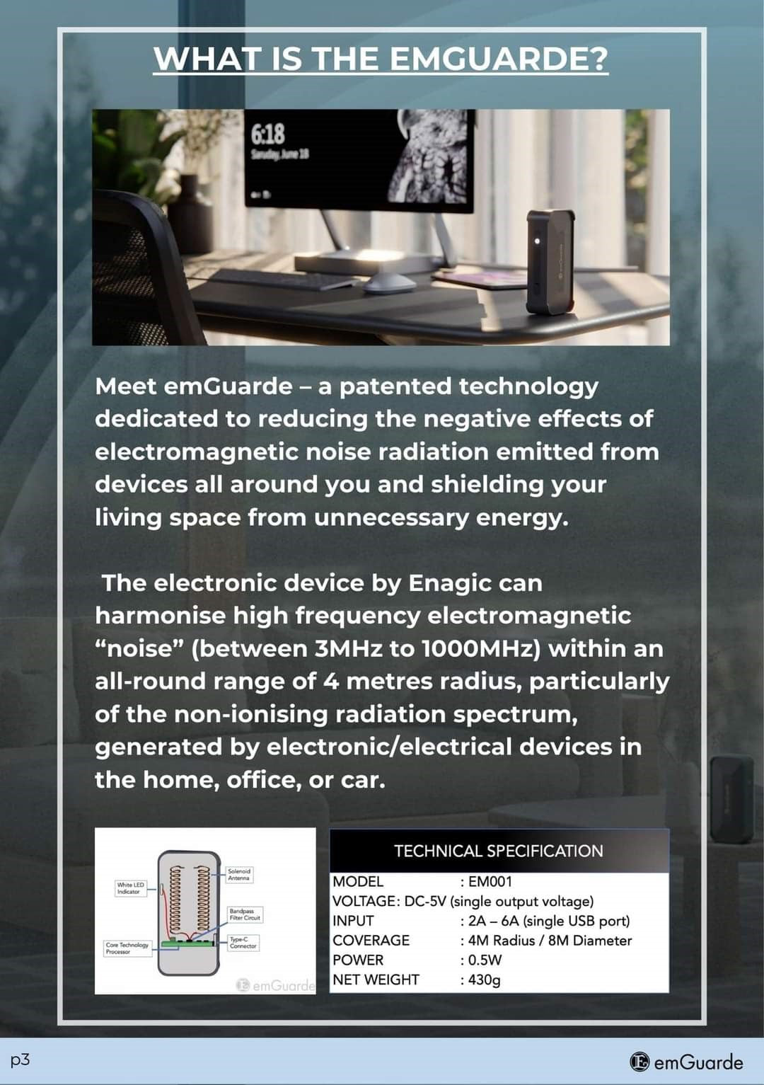 emGuarde offers you state of art protection against electromagnetic noise radiation 24/7. Designed to reduce the negative effects of electromagnetic noise radiation emitted from devices all around you.